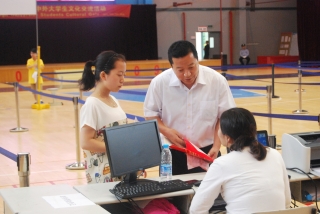 2013年7—8日是上海工商外国语职业学院新生报到的日子,和往年不同,今年的新生报到显得更加便捷有序,新生的报到注册从过去的多窗口来回奔波变成如今的一站式服务,只需刷取身份证信息,即可瞬间完成分班、分学号、分宿舍等等几乎所有手续,直接到宿舍入住。而学生需要知悉的信息,接下来的活动安排,重要联系人的联系方式,包括宿舍床位号和钥匙领用单以及前往的方式都在现场打印的注册单上一目了然,使学生和家长对要做的事如领钥匙入住、入学教育安排等等事项了然于胸,不再茫然四处询问。两天报到时间共有2500多名同学报到,最集中学生到校的时段,排队人数也不超过30人,等候时间不超过15分钟,大大改变了以往学生排队等候时间过长,学生、家长情绪急躁的情况,这一切的变化来源于今年学院借助政府扶持资金项目开发的迎新系统。