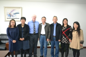 On November 24, 2014, Vice President, Dean of the Department of English, Professor Zhu Shichang, together with Associate Professor Executive Associate Dean Chen Cheng, Madame Shen Hongbo, Associate Dean and Associate Professor Madame Niu Yuanyuan, Secretary of International Cooperation of the Department of English met with Professor Gerry Hayden, the Chief Representation in China region Jennifer Gao and Mr. Li Jianguo, the manager of Shanghai Overseas International Education Service Co, Ltd. And both parties held conversations on the issues of the mutual concern.