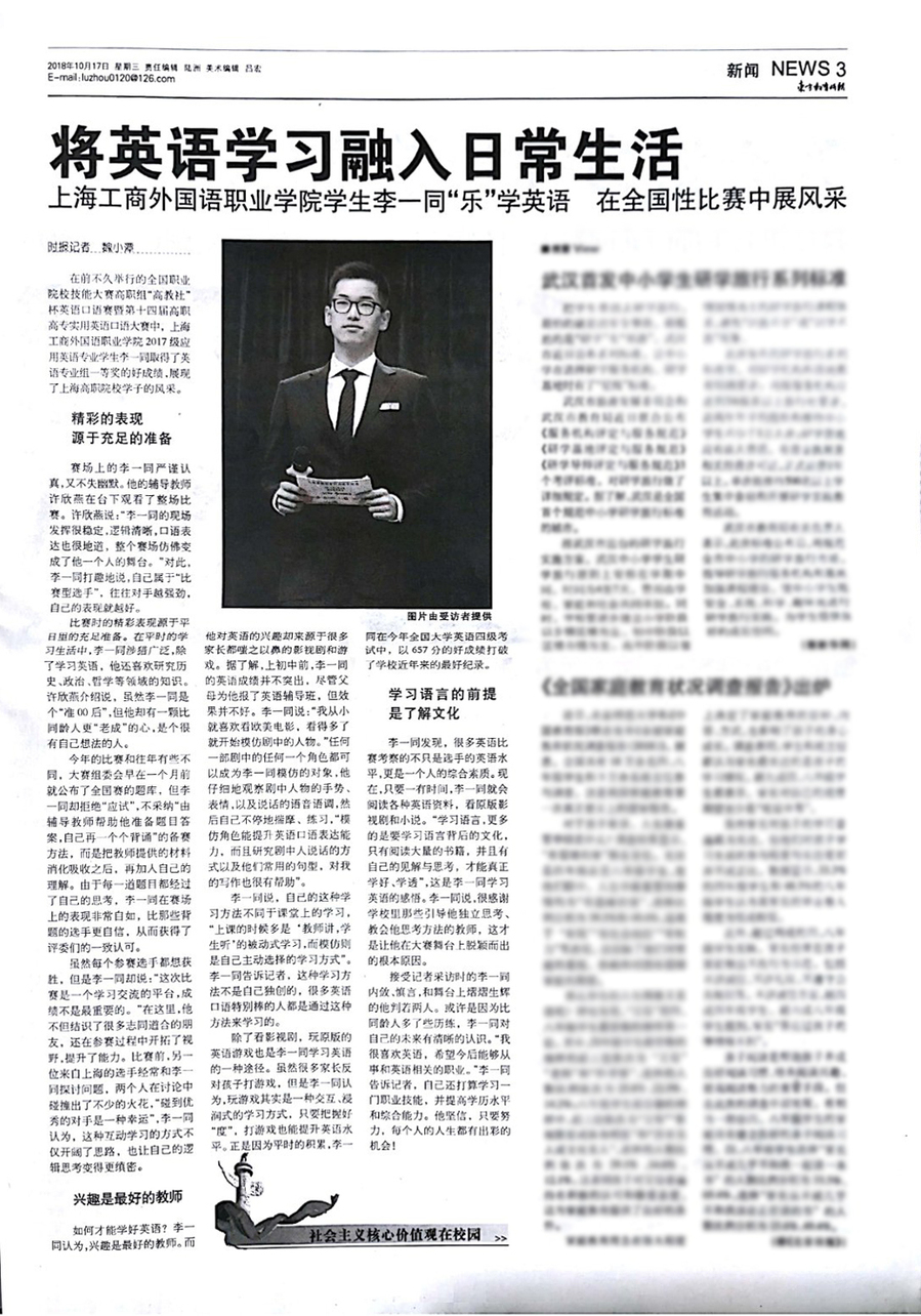发布人:上海工商外国语职业学院发布时间:2018-10-18浏览次数:2763