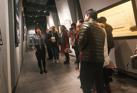 首先映入眼帘的是富有历史感和视觉震撼力的“弹孔墙”,弹痕累累的墙上,日军炮击形成的8个主要炮弹孔和430余个枪眼弹点,强烈地触动了大家的心灵;走进展厅,大家又被悬挂的谢晋元巨幅《给妻子的家书》吸引,“晋元决心殉国,誓不轻易撤退,亦不作片刻偷生之计,在晋元未死之前,必向倭寇索取相当代价。余一枪一弹,亦必与敌周旋到底”,字迹清秀,饱含深情,表达了对妻子、家庭的深深歉意,更是体现了甘愿为国捐躯的英雄气概。