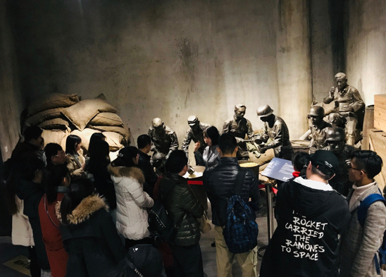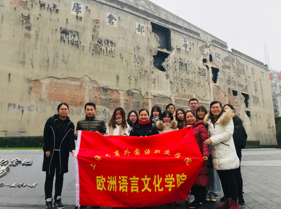 12月8日,雪花飘飘,在入冬以来第一场雪飘落的时候,欧洲语言文化学院学生党支部的党员同志集体参观了四行仓库抗战纪念馆。