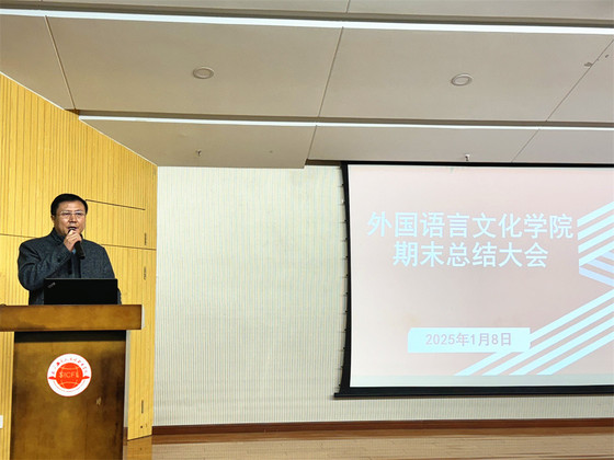 1月8日,外国语言文化学院在图书馆报告厅召开全体教职工期末总结大会。大会回顾了2024年学院在教学、学工、科研、产教融合等各方面取得的成绩,并对新学年的工作进行全面规划和部署。