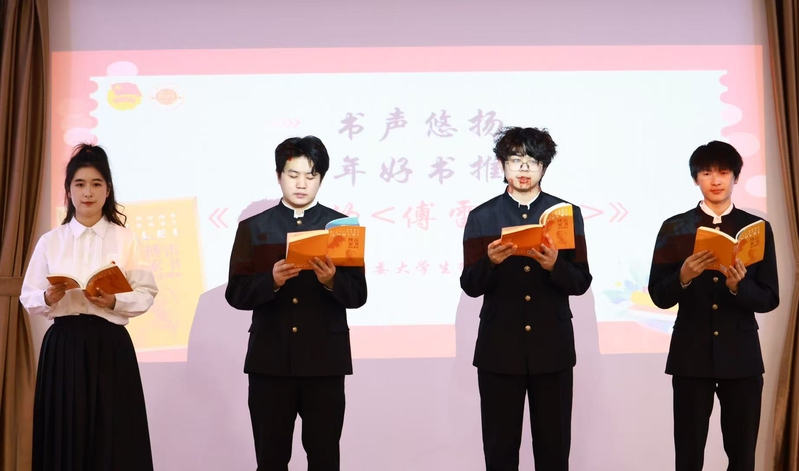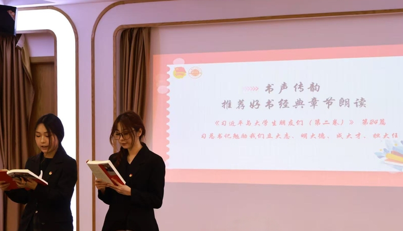 本次活动共分为书声传韵、书声启智、书声润心、书声悠扬、书声同行,五个环节。书声传韵,传递着知识与理想的火种,让青年在思想的交流中树立远大志向。播音班的同学们倾情朗诵了《习近平与大学生朋友们(第二卷)》的内容,带领大家深刻感悟习近平总书记对青年树立远大理想、担当时代使命的殷切期望。
