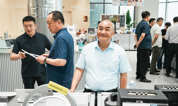 紧接着,大家移步室外,沿二楼连廊依次参观了CMG融媒影城、西岸传媒港,沿着习近平总书记4月29日考察上海的调研路线,一行人还走进“模速空间”人工智能产品体验中心,近距离感受科技创新浪潮下的变革与发展。