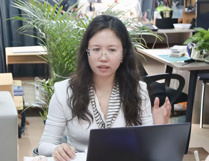 和水英教授以“非遗编结的守正与创新”为主题,系统阐释“一课双融三输出”的课程建设理念,并以其主持的上海市职业教育一流核心课与上海市课程思政示范课《陈设品设计与制作》为例,向与会人员分享高水平课程建设实施路径与申报要点。