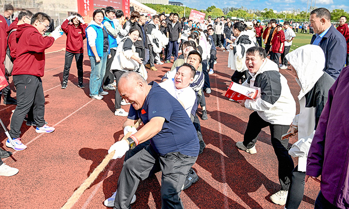 本次团队拓展活动包含“一鼓作气”“出类拔萃”“携手并进”“眼明手捷”和“力拔山河”五个项目,全方位展现辅导员综合素质和精神风貌。比赛中,两校参赛团队团结协作、默契配合,多个项目表现优异,彰显出出色的团队协作和应变能力。尤其在“力拔山河”拔河比赛项目中,校领导黄正亲自上阵,与辅导员们“劲往一处使”,同心协力对阵兄弟院校,大大提升了队伍整体士气,圆满出色地完成了拓展活动项目。