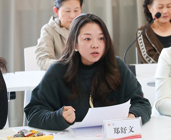 艺术设计与传媒学院郑舒文老师代表年轻教师发言。她表达了对老一辈教育工作者的敬佩之情,表示将以老前辈们为榜样,传承他们严谨治学的态度、关爱学生的情怀,在新时代的教育征程中,将这份初心与创新实践相结合,努力成长为合格的教育接班人。