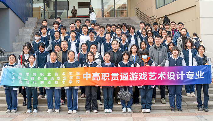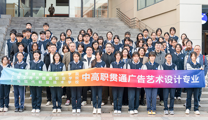 11月5日下午,“走进新纪元——设计专业中高贯通班校园开放日”活动在艺术设计与传媒学院李宪锋院长的统筹部署下,于上海工商外国语职业学院图书馆报告厅举行。上海市现代职业技术学校数字艺术专业群负责人赵崝、招就办副主任岑天昊,上海工商外国语职业学院艺传学院支部书记兼副院长刘向阳、教学副院长和水英、校产教融合办副主任曾健等校领导和专业团队,以及来自游戏艺术设计、广告艺术设计四个班级的百余名同学和家长代表参加活动。活动通过“交流分享”与“校园参观”两大环节,全面展现了中高职贯通人才培养的路径与成果,进一步深化了校际协同与家校联动的机制。