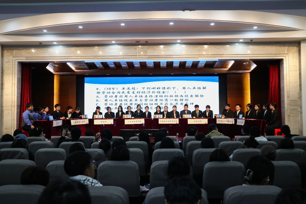 赛事自10月20日启动以来,各二级学院依托校方题库开展院内选拔,择优组建五人参赛团队。经过严格筛选,8支队伍于10月25日脱颖而出,成功晋级。10月29日,普法讲座为选手深化法治认知、拓展知识视野提供了有力支撑。11月5日,复赛与决赛的激烈角逐,将活动推向高潮。
