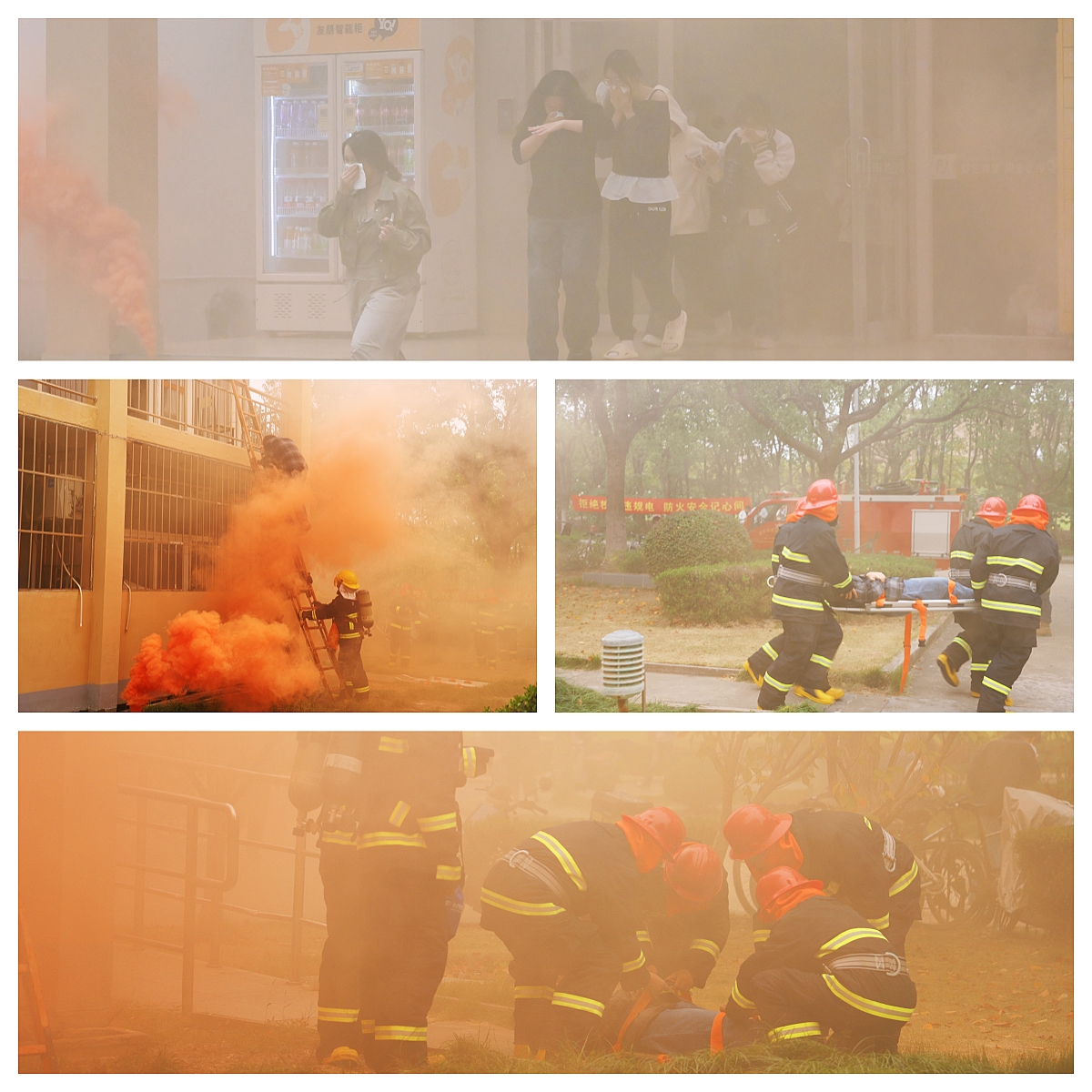 启动仪式结束后,现场随即举行了消防疏散应急演练。模拟火警警报响起后,现场浓烟迅速弥漫开来。在消防教官和各学院辅导员的专业指引下,同学们用湿毛巾捂住口鼻,低姿弯腰,沿预先规划好的疏散路线快速、有序地从宿舍和教学楼撤离至安全区域。演练过程中还模拟了对受伤人员的救治。整个演练过程紧张有序,师生们沉着冷静、配合默契,在短时间内便完成了全部人员的疏散集结,达到了预期的演练效果。