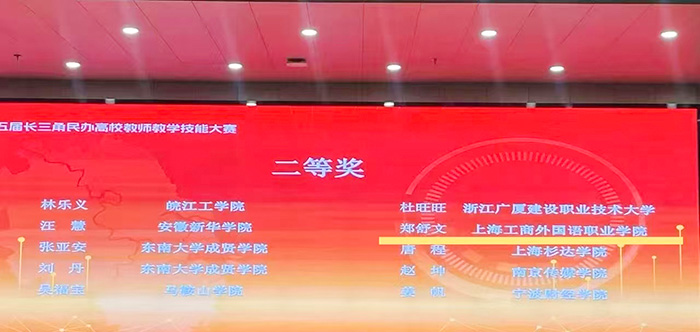 11月7日至8日,第五届长三角民办高校教师教学技能大赛在上海师范大学举办。艺传学院艺术设计(少儿美术)专业教师郑舒文在学校的全力支持下,凭借扎实的教学功底、新颖的教学设计及出色的现场发挥,从众多选手中脱颖而出,荣获大赛二等奖。本次大赛由上海市教育委员会、江苏省教育厅、浙江省教育厅、安徽省教育厅联合主办,上海市民办学校教师专业发展中心承办,覆盖长三角地区128所民办高校,汇聚众多教学骨干同台竞技。此次获奖充分展现了我校青年教师优秀的专业素养与过硬的教学水平,是学校加强教师队伍建设的有力印证,也将进一步激励全校教师以赛促教、深耕教学改革,提升教学质量和水平。