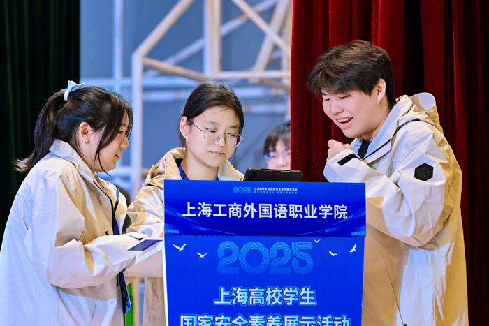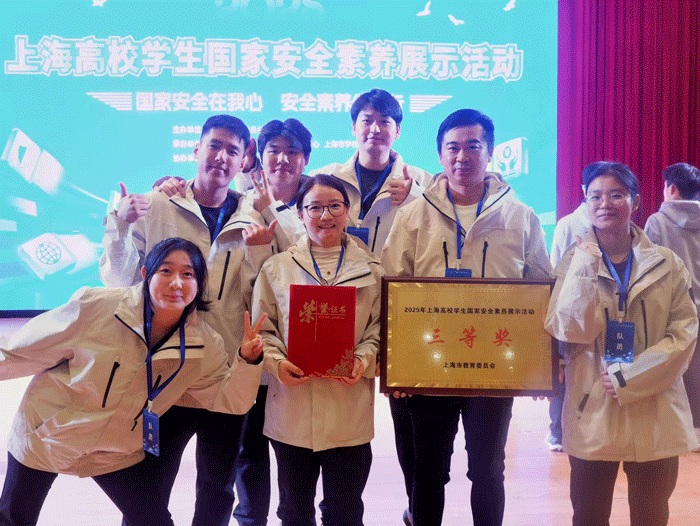 11月15日,以“国家安全在我心,安全素养伴我行”为主题的2025年上海高校学生国家安全素养展示活动市级展示在上海电力大学举行。本次活动由上海市教委主办,上海市教委教育技术装备中心、上海市学校安全协会承办。由我校商学院朱文海、沈筠杰、容佳仪、孙林婧、来泽栋5位学子组成的参赛代表队,在领队严明老师和指导教师严丹芬的带领下,与晋级决赛的上海交通大学、同济大学、上海政法学院、上海电力大学、复旦大学上海医学院、上海理工大学、华东政法大学等7所高校参赛队伍同台竞技、奋勇争先,最终斩获三等奖。