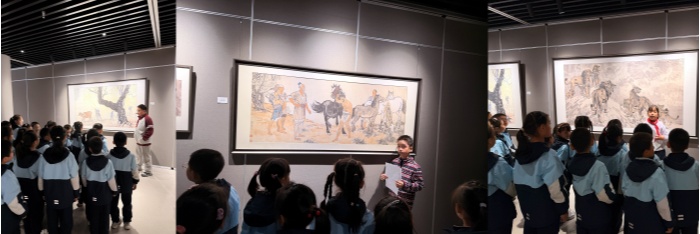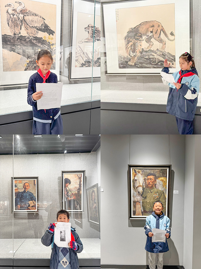 作为活动的核心策划与指导方,视觉传达设计专业团队深度参与活动全流程,包括活动方案设计、艺术知识普及与解说技巧培训。从梳理画作历史背景,到创作情感充沛的解说词,再到打磨肢体语言与眼神交流的细节,全方位助力孩子们实现从“艺术爱好者”到“文化小使者”的转变。“起初站在画作前,我会紧张到忘词,但想到要把徐悲鸿爷爷的故事讲给弟弟妹妹听,我就浑身充满力量。现在,我能从容地把画作背后的精神讲解清楚啦!”一位小解说员的分享,道出了此次实践活动中的成长与收获。