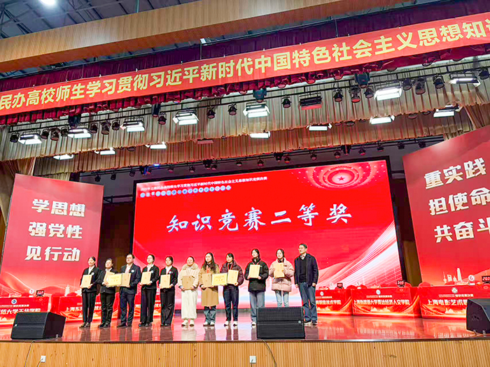 11月28日,由上海市民办教育综合党委指导、上海工商职业技术学院主办的“学用新思想 建功新时代”——2025年上海民办高校师生学习贯彻习近平新时代中国特色社会主义思想知识竞赛圆满落幕。学校马克思主义学院组建代表队参赛,在全市16支参赛队伍中脱颖而出,成功晋级决赛并荣获二等奖。