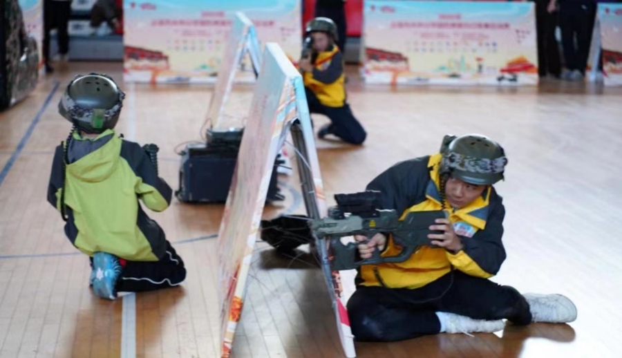 总决选现场,采用“国防知识竞赛+军事体育竞技”综合比武方式开展,设置“必答题—抢答题—模拟射击对抗任务”三大环节,综合考验参赛学生国防知识储备、临场反应与团队协作能力。必答题环节各队稳扎稳打,抢答题环节紧张刺激,模拟射击军事对抗环节将现场氛围推向高潮。各联队参赛学生以扎实的国防知识储备、敏捷的临场应变能力和团结的协作拼搏精神,充分彰显新时代青少年学生崇军尚武、立志报国的爱国热血与青春风貌。
