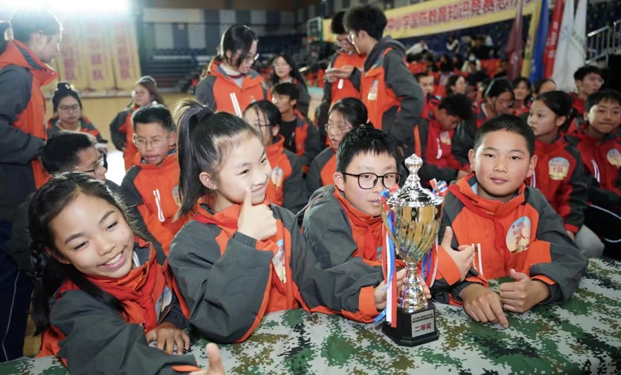 华东理工大学附属闵行科技高级中学,是全国学校国防教育示范校,以培养“具有良好信息能力且科学素养的优秀高中毕业生”为总体育人目标,其代表队成功跻身二等奖获奖联队“利剑战队”,领队苏小青老师在赛后介绍说:“我们将创建蝉联全国国防教育示范校的目标写进三年规划,制定了专属的国防教育实践方案。通过定期开展国防安全知识讲座、消防演习,推动国防教育与学科教学深度融合,邀请家长参与课堂、聘请武装部干部担任校外辅导员等方式,实现家校社三方联动,让国防教育落地生根。”她还表示,此次参赛选手均是暑期“走进边防”国防教育实践活动中优中选优的学生,“比赛让同学们把理论学习与实践研学紧密结合,做到知行合一,在收获知识与友谊的同时,也让爱国主义情怀真正融入学习与生活。”