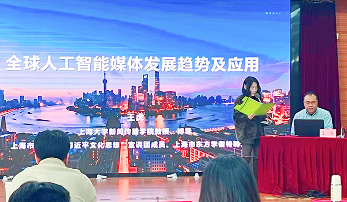 上海大学新闻传播学院教授、博导王虎以《全球智能媒体发展趋势及应用》为题,系统剖析了人工智能技术驱动下传媒生态的深刻变革。他指出,当前智能媒体发展正呈现“智能体普及、模型轻量化与垂直化、人机协同深化、AI+行业融合”四大趋势。他强调,AI已从辅助工具演变为内容生产的协同伙伴,传媒业的边界正在消融,逐渐成为支撑社会治理的通用型基础设施。他以上海大学研发的“爱互助”智慧养老模型为例,生动阐释了智能媒体如何跨界服务社会需求,实现“内容即服务”的价值跃升。王虎建议,高职宣传工作者应主动拥抱技术变革,掌握AI工具使用与人机协同能力,培育适应智能时代的核心竞争力。
