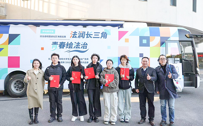12月3日,“法润长三角 青春绘法治”2025年长三角民办高校大学生法治素养公益广告邀请赛颁奖典礼在上海视觉艺术学院顺利举行。在艺术设计与传媒学院李宪锋院长、党总支书记刘向阳的部署与指导下,学院精心组织专业队伍积极参与,最终取得1金、1银、4铜及6项优秀奖的优异成绩。学校凭借良好的组织工作获评“优秀组织奖”,王玉老师被授予“优秀指导老师”称号。