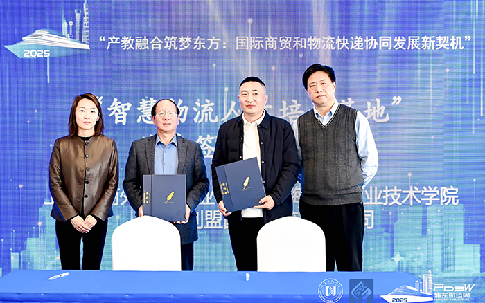 12月4日下午,作为“2025浦东航运周”的重要系列活动之一,“产教融合 筑梦东方:新质生产力赋能快递物流和港航贸创新发展”研讨会在浦东世博天地举行。上海工商外国语职业学院和上海思博职业技术学院作为重要参与方,由副校长姚大伟教授带队,商学院产教融合办主任杨瑜瑜、物流专业主任蒋慧贤等一行出席活动,并现场签署校企合作协议。