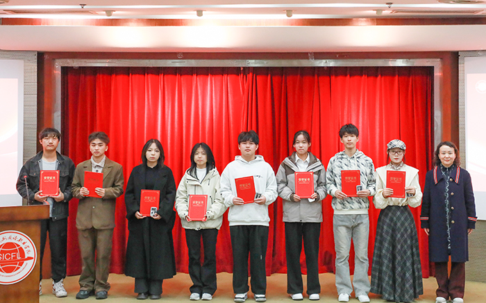 为表彰先进,仪式现场对2024-2025学年学生记者团优秀成员进行表彰。学校党委宣传部副部长、新闻中心副主任汪李琴宣读表彰决定,校党委副书记、副校长张辉为八名优秀成员颁发荣誉证书与纪念奖品。