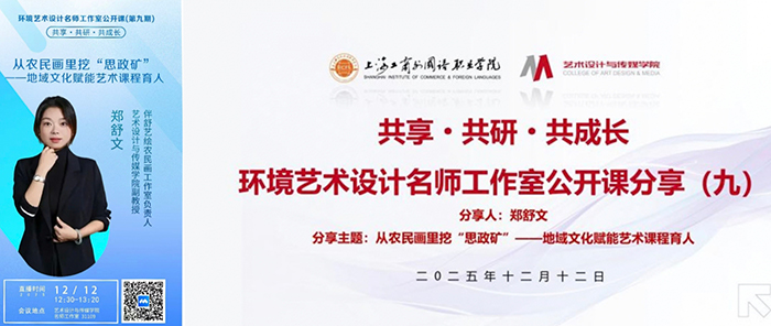 近日,我校徐悲鸿艺术学院和水英环境艺术设计名师工作室“共享·共研·共成长”第九期公开课成功举办。本次活动采用“线上+线下”融合形式,由名师工作室负责人和水英教授主持,徐悲鸿艺术学院郑舒文老师担任主讲。郑舒文老师以金山农民画这一地域文化瑰宝为核心载体,通过“地域文化挖掘+课程内容融合+实践项目落地”的路径,分享地域文化赋能艺术课程育人的新范式,为艺术类专业“课程思政”改革提供了鲜活样本。市级学员上海闵行职业技术学院苏冰洁、上海工商职业技术学院付丽丽,上海交通职业技术学院黄盈老师及我校王玉、孙彧、王南奇等校级学员参加活动。