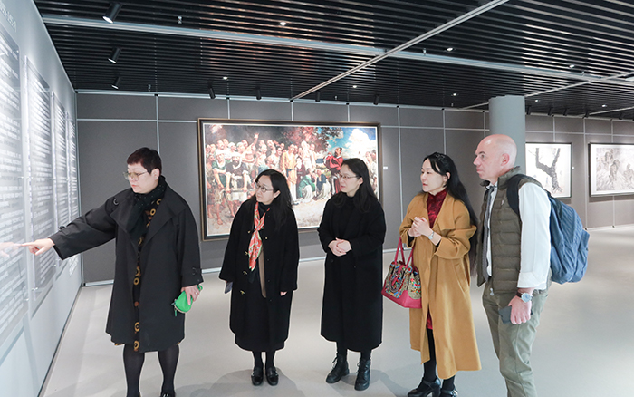 会谈结束后,双方与会人员一同前往徐悲鸿艺术国际交流中心参观画作展览。代表团对展览画作给予高度赞赏,并表示从这些艺术作品中看到了更多合作的可能性。