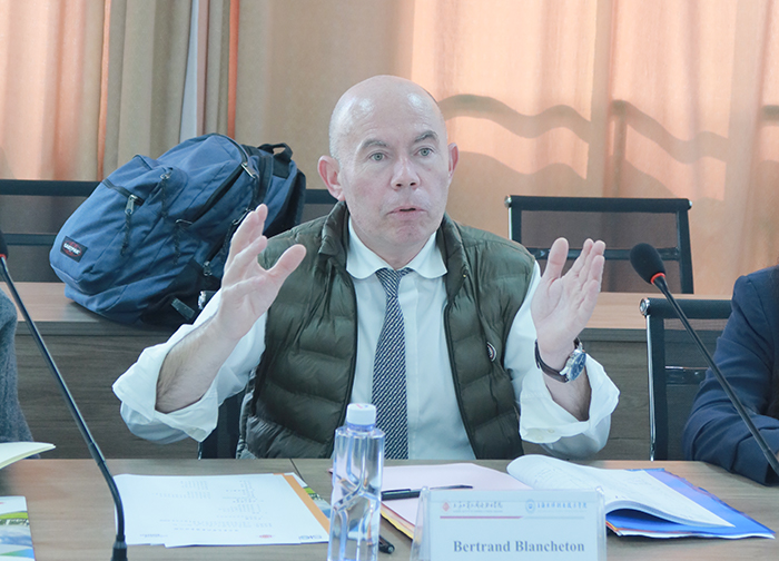 来访的Bertrand Blancheton院长对我校的接待表示感谢,并介绍了波尔多大学的基本情况及经管学院开设的本科和研究生项目。他表示,双方可在学生预科、专升本、学期交流等项目及教师工作坊等方面开展务实合作,并可依据实际需求制定合作方案,支持双方教师开展学术交流与合作。他提到,尽管自己掌握的中文词汇有限,但“信任”一词恰如其分地形容了当前两校的合作关系。他对已赴法学习的我校学生表现给予高度评价,并对未来合作充满信心。