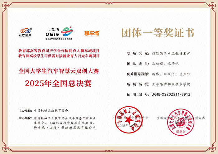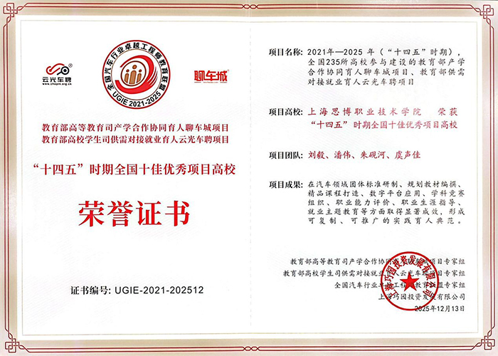 12月12日至13日,由中国机械工业教育协会组织的《汽车人工智能训练师职业能力评价规范》《汽车金融科技师职业能力评价规范》等首批汽车领域团体标准发布仪式,以线上线下融合形式举行。我校作为主起草单位之一,主起草人潘伟老师受邀出席仪式,与全国机械行业专家、院校学者及企业工程师等产学研领域代表共同参会。会上,我校斩获多项荣誉:获评“教育部聊车城产学合作就业育人‘十四五’时期全国十佳优秀项目高校”,教育部聊车城项目组的教师同步荣获表彰;在同期举办的全国大学生汽车智慧云双创大赛2025年总决赛中,我校师生奋勇拼搏,斩获团体一等奖,彰显了我校在汽车专业领域人才培养与产教融合的扎实成效。