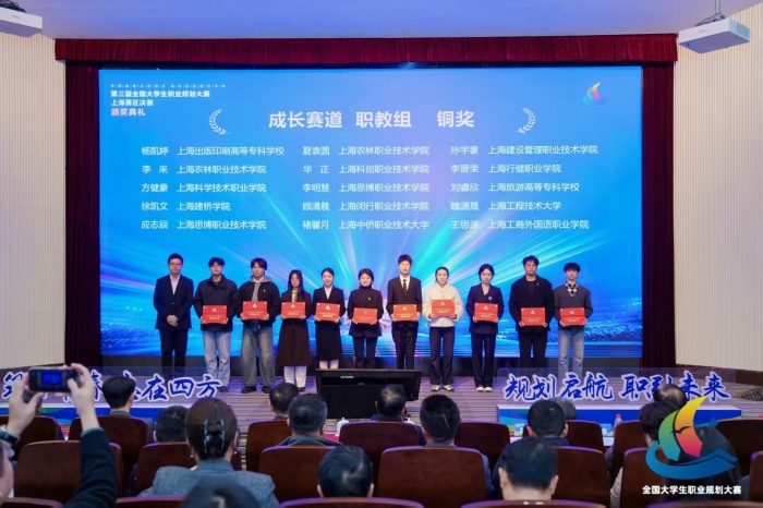 除核心金奖突破外,我校学子与教师在本次赛事中还多点开花、收获颇丰:应用外语学院孟晶老师斩获教学赛道职教组银奖;应用外语学院西班牙语专业王思源同学、智能建造与制造学院工程造价(中高职贯通培养)专业应志辰同学、徐悲鸿艺术学院游戏艺术设计(中高职贯通培养)专业李明慧同学荣获成长赛道职教组铜奖;卢小希、张彬晨两位老师获评优秀指导教师;上海思博职业技术学院凭借完善的组织保障、突出的赛事成果,被授予优秀组织奖。一系列荣誉的取得,充分彰显了我校生涯教育与就业指导工作的扎实成效,也体现了“以赛促学、以赛促教、以赛促就”的赛事育人理念。