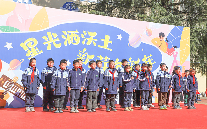 小主持人宣布“星光洒沃土新芽向新年”元旦文艺汇演开始