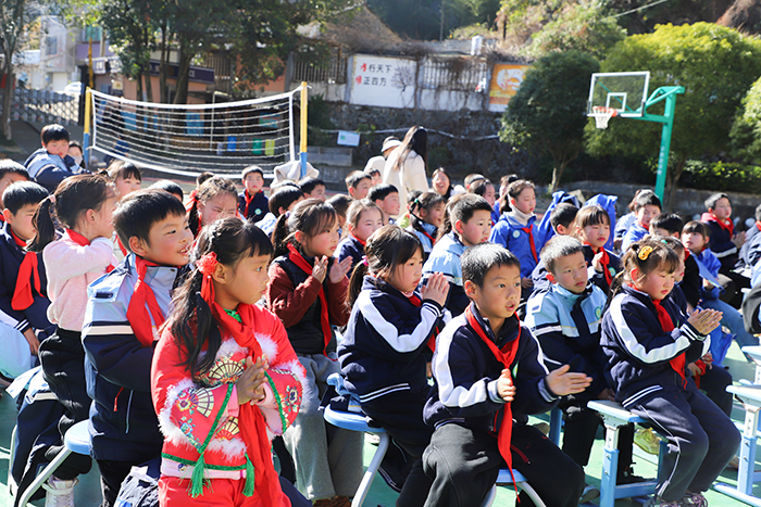“看到孩子们自信地站上舞台,见证你们在美育滋养下茁壮成长,这场相聚格外有意义。”校领导黄正上台讲话,并肯定了支教老师的倾心付出与同学们的精彩表现。他寄语孩子们在阳光校园中勤学善思、锤炼本领,也希望支教老师能在山区教育实践中感受风光之美、童真之纯,更期许两校继续携手,让教育帮扶收获更多美好。