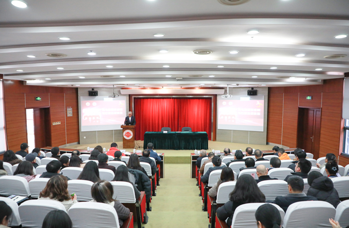 大会特别邀请上海市教育委员会政策法规处副处长李进付作“提升依法治校与管理水平”专题报告。讲座围绕政策背景、依法履职、法治思维及工作思考四大板块,深入解读习近平总书记关于教育的重要论述及《教育强国建设规划纲要》核心要求,结合教育法治新形势,明确法治核心定位,案例详实、剖析深刻,有效强化了与会干部的法治意识,为学校规范管理、合规发展提供了专业指导。