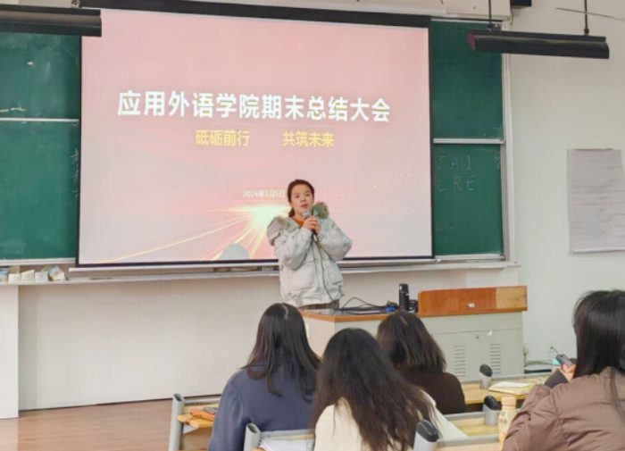 最后,学院院长在总结发言中对全体教职工一年来的辛勤付出表示感谢,对学院各项工作取得的成绩给予肯定。面对职业教育高质量发展的新机遇,院长提出三点期望:一是要坚持立德树人根本任务,深化“五育并举”育人模式;二是要聚焦数字化转型,打造智慧外语教育新生态;三是要强化类型教育特征,构建“产学研用”协同创新服务工作体系。同时,号召全院上下凝心聚力,勤学善思,常拓展历练,做守纪律规则、强服务奉献的模范教师,为建设特色鲜明的高水平国际化应用型外语学院努力奋斗。