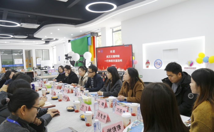 1月5日,武汉文理学院商学院教学副院长刘炫及珍岛集团谢倩倩一行9人莅临我校数字商贸学院进行访问交流。学校副校长兼数字商贸学院院长姚大伟代表学校向来宾表示欢迎。数字商贸学院常务副院长王云玺、副院长胡凤麟及学院各专业主任参加交流活动。