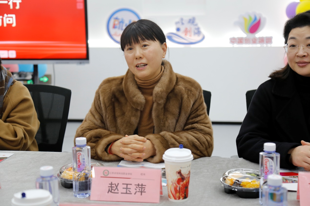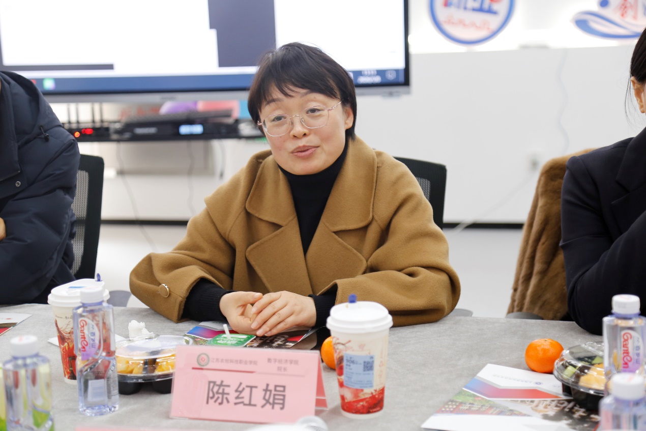 1月8日,江苏农牧科技职业学院校长赵玉萍,食品与健康学院党总支书记张军燕,数字经济学院院长陈红娟、副院长胡永盛、办公室主任孙泽霖,以及珍岛集团院校事业部东部总经理石磊、江苏省区域总监李晋楠等一行来访学校数字商贸学院。校领导黄正,副校长兼数字商贸学院院长姚大伟,常务副院长王云玺,副院长胡凤麟、于丽艳、金波,教管办主任冯燕菁、国商系主任乐飞红以及电商系主任邹雨枫等接待来宾。