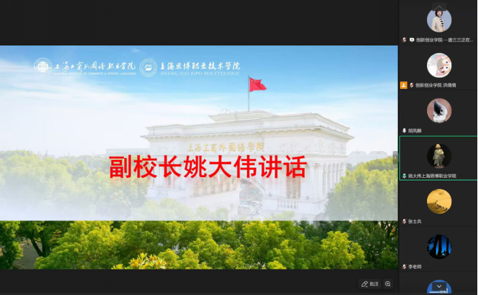 为扎实推进中国国际大学生创新大赛(2026)校级赛事组织与项目培育工作,1月14日晚,创新创业学院组织召开中国国际大学生创新大赛(2026)校赛启动方案说明会暨首次培训会。本次会议采取线上方式进行,副校长姚大伟、各二级学院相关领导、指导教师及创新创业学院全体成员参会。会议由创新创业学院院长胡凤麟主持。