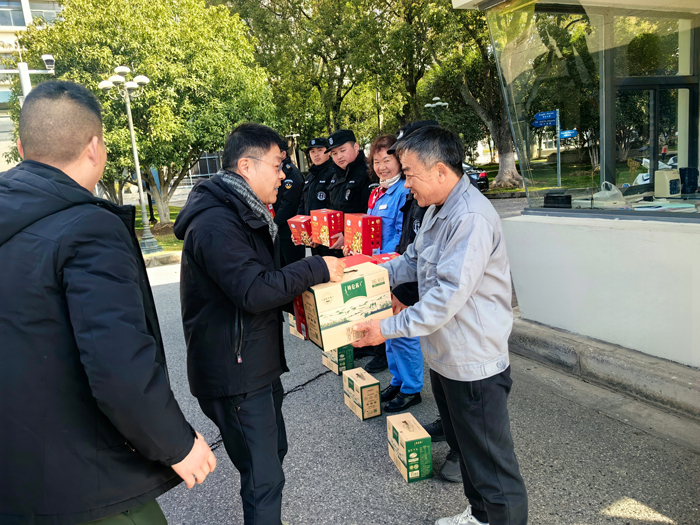 慰问组先后来到工商外北校区、思博学院和园区学生宿舍,每到一处,校领导都与在岗教职工亲切交谈,并亲手送上精心准备的新春慰问品,细致询问校园物业、安保的值班值守及学生住宿生活等情况;对在岗教职工“舍小家、为大家”,节日坚守岗位、履职尽责的奉献精神表示崇高敬意和衷心感谢。
