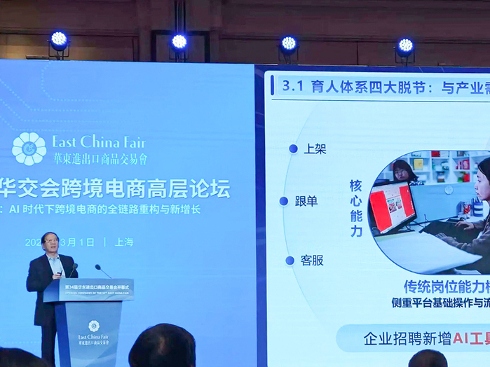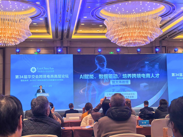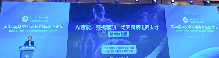 3月1日,第34届华东进出口商品交易会(简称“华交会”)在上海新国际博览中心隆重开幕,作为本届华交会核心活动之一的第34届华交会跨境电商高层论坛于开幕日当天下午举行。本次论坛以“智启未来:AI时代下跨境电商的全链路重构与新增长”为主题,汇聚了政府主管部门领导、行业专家学者、跨境电商平台高管及生态服务商代表,共同探讨人工智能技术如何深度赋能跨境电商,重塑产业新格局。我校副校长姚大伟教授再次应邀出席华交会跨境电商高层论坛并作主旨演讲。