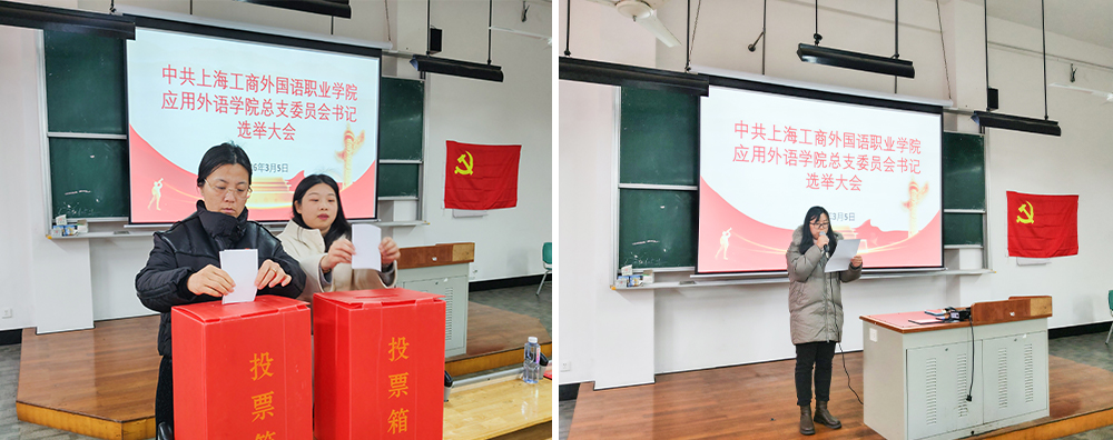 为进一步加强基层党组织建设,筑牢党建战斗堡垒,凝聚推动学院高质量发展的强大合力,3月5日下午,学校应用外语学院党总支在一号楼阶梯教室召开全体党员大会暨党总支书记选举大会。上海思博职业技术学院党委组织部部长陈纪文到会指导,我校应用外语学院全体党员参会。会议由学院党总支副书记陈婕主持。