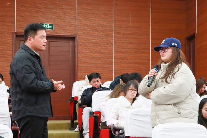 现场互动提问环节气氛热烈,同学们踊跃提问,将讲座内容与自身参赛项目相结合,提出诸多实际问题。针对学子们在备赛中遇到的困惑,蒋老师逐一细致指导,引导大家精准聚焦项目痛点,理清核心逻辑,还现场演示传授向AI工具提出高质量问题的方法,帮助同学们获取更具价值的项目优化建议。这种贴合备赛实战的指导方式,让在场学子收获颇丰、受益匪浅。