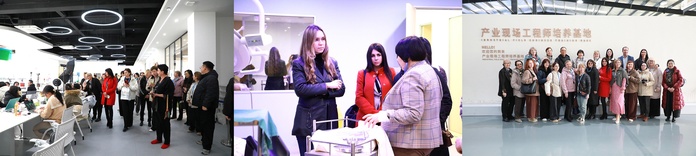 座谈会后,代表团在国际交流处工作人员陪同下实地参观校园,先后走访数字商贸学院实训室、思博国际护理学院实训中心、智能建造与制造学院与中建八局共建的产业现场工程师培养基地等场所。优美的校园环境、特色鲜明的实训平台与产教融合成果,给代表团成员留下深刻印象。应用外语学院俄语系主任严静静带领9名应用俄语专业学生全程陪同参观,师生们凭借扎实的俄语功底和热情周到的服务,为参观活动提供全程翻译支持,保障交流顺畅高效。