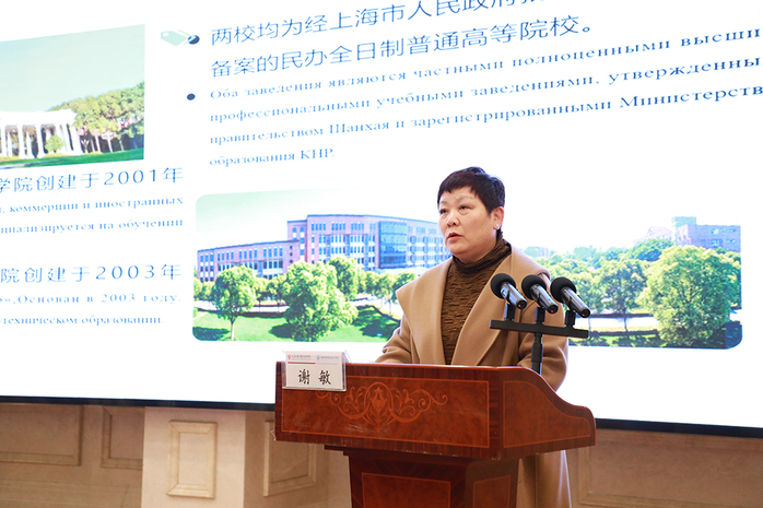 副校长谢敏围绕学校基本概况、办学特色、专业布局及国际交流成果等作详细介绍,表达学校与俄罗斯教育院校开展务实合作、实现共赢发展的愿景。