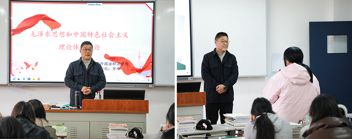 为深入推进思想政治理论课改革创新,落实立德树人根本任务,近日,两校校领导万峰、黄正、张辉分别走进思政课堂,围绕《毛泽东思想和中国特色社会主义理论体系概论》课程,为2025级新生讲授春季学期“开学第一课”,引领青年学子感悟思想伟力、坚定理想信念、勇担时代使命。