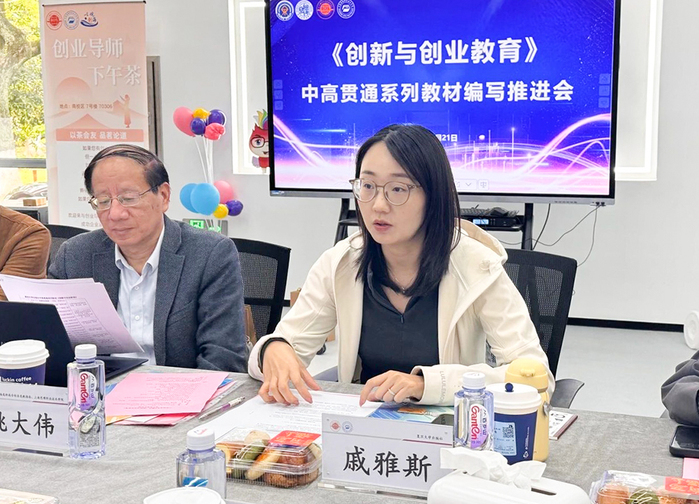 4月21日下午,中高职贯通系列教材《创新与创业教育》编写推进会在学校创新创业学院·双创孵化基地顺利举行。本次会议由上海市高职高专经济类专业教学指导委员会指导,复旦大学出版社有限公司组织,学校创新创业学院主办。上海多所中高职院校、行业企业及本校编写团队、特邀专家齐聚一堂,共同推进教材高质量编写工作。