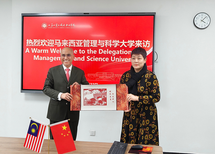 4月22日下午,马来西亚管理与科学大学(Management and Science University)校长丹斯里•舒克瑞(Tan Sri Professor Dr. Mohd Shukri Ab Yajid)与校董潘斯里•朱奈娜•阿都哈密(Puan Sri Datuk Professor Dr. Junainah Abd Hamid)一行来学校访问交流,中国联合学院院长陈洁和马来西亚管理与科学大学吉隆坡学习中心市场部总经理黄晨淇陪同来访。学校副校长谢敏接待代表团一行,国际交流处处长李爱群、智能建造与制造学院院长刘毅、应用外语学院副院长杨萍、数字商贸学院副院长于丽艳,以及国际交流处和IPC课程中心相关工作人员参加座谈。
